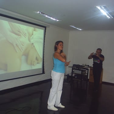 Pioneira na massoterapia corporativa e em eventos na Grande Vitória.